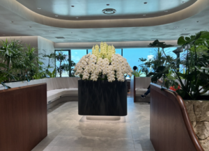 那覇空港ラウンジHANAは2026年2月24日に4階へ移転しました。LOUNGE HANAと名称も変わり、海の見える広々としたラグジュアリーな空間に生まれ変わっています。国内線の4階、滑走路へ向かって右側に進むと入り口です。