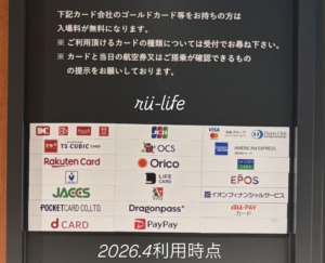 那覇空港のラウンジを利用できるゴールドカードをお持ちの場合は、入場料が無料になります。VISA、JCB、Orico、SAISONカード、イオンカード、楽天カード、POCKETCARD、PayPayカード等、下記をご参考にどうぞ!(※2026.4月に訪れた際の情報です)