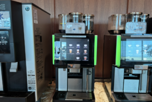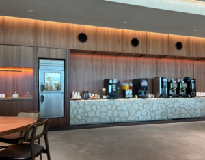 よくあるタイプのドリンクバーに加えて、コーヒーのマシンもエスプレッソやカプチーノが出るタイプで少し良いものを扱っている印象です。