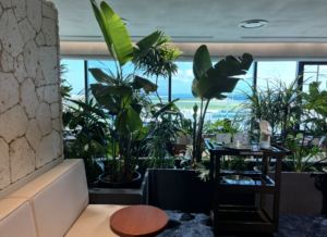 まず驚いたのは、広い!!!ゴールドカードで利用できるラウンジとして、満足感が高いです。広々としたフロアに緑、そして窓から見える海。座席数も多く、ゆっくりと過ごすことができます。