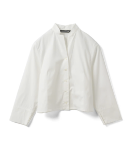 一見、スタンドカラーシャツみたいですが、カットが入っていてすっきりと見えるところもほっこりしすぎなくて、素敵だと思う!最近よくダムールネックレスを着けるので、襟開いた方が良くて。こういった細部のこだわりがファンを抱えている理由なのかな?と感じました。
