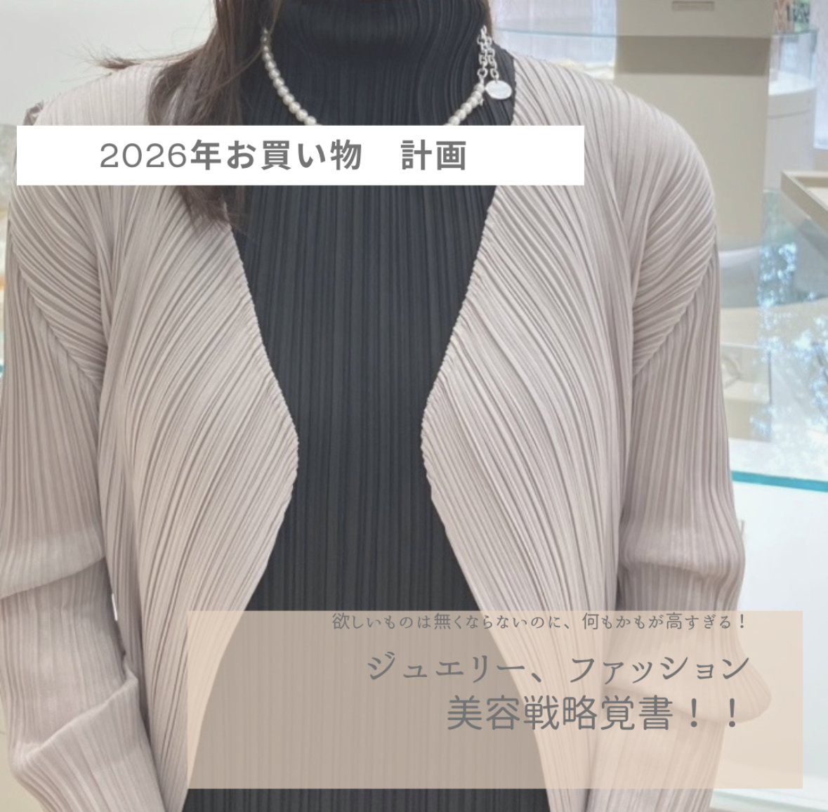 結構リアルな計画になりました。ジュエリーは手持ちを愛でつつ、不足している耳周りをプラスして、リフレッシュする作戦です。ファッションは新しいものをというよりは、今の大替として購入する計画。駆け込んだプリーツプリーズを組み合わせて、生きていけるはず。