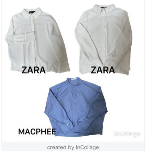仕事用のシャツ、ブラウスは3着です。1年半くらい着ています。